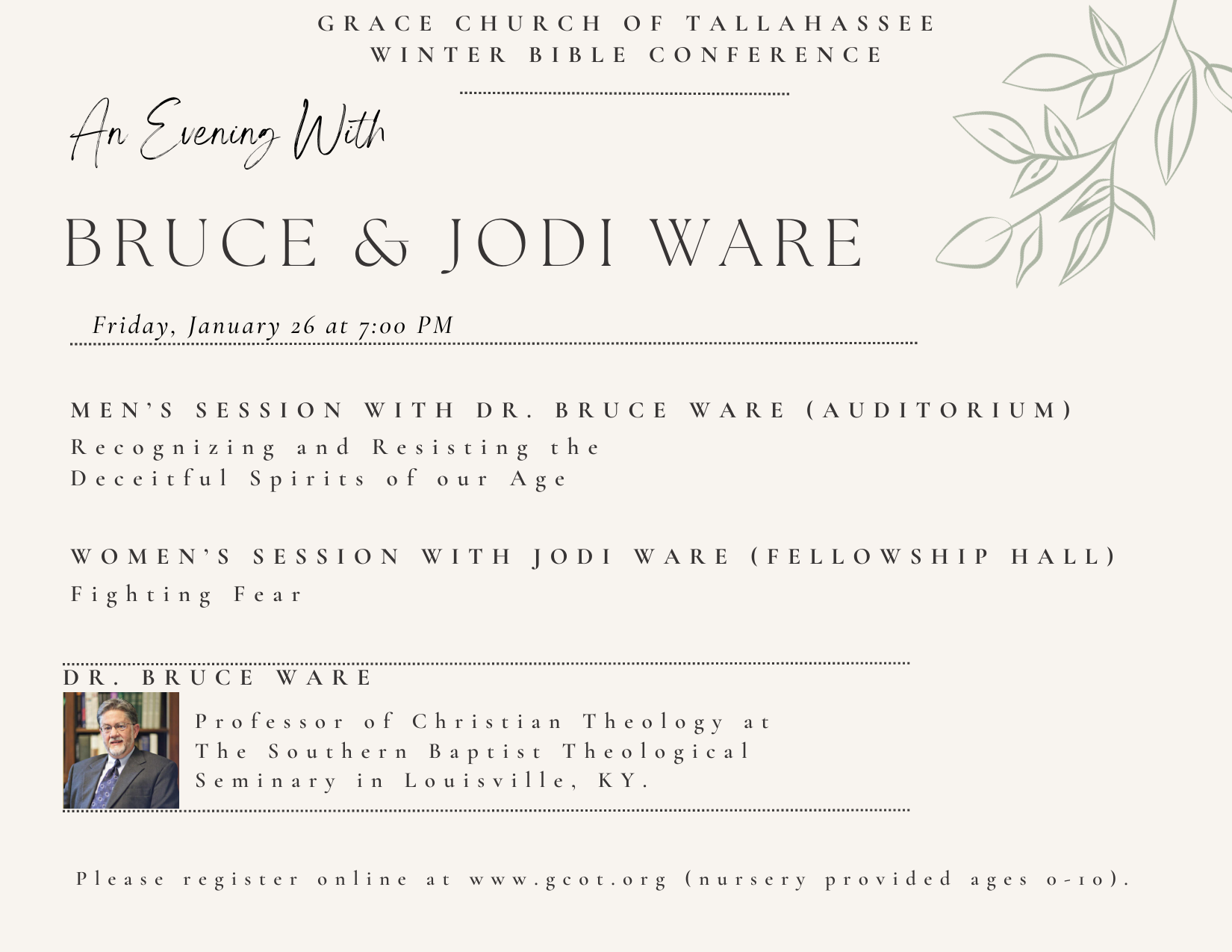 7:00 pm Men's Session with Dr. Bruce Ware (Auditorium)